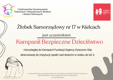 Dlatego nasz żłobek bierze również udział w równoległej kampanii „Bezpieczne Dzieciństwo”.