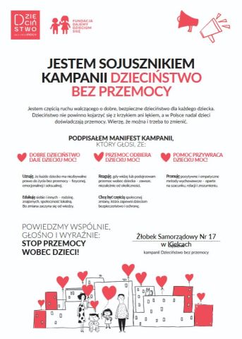 Prosimy Państwa o zapoznanie się i podpisanie dołączonego Manifestu „Dzieciństwo bez przemocy”, potwierdzając tym samym